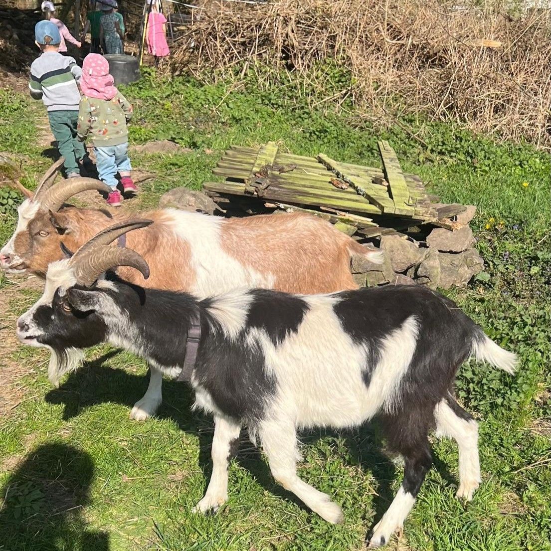 Die Feuerdrachen erkunden das Thema „Bauernhof“ mit allen Sinnen. Ein Highlight war der Ausflug zum Wochenmarkt, wo die Kinder verschiedene regionale Produkte wie Käse, Eier und Fisch entdeckten und sogar teilweise probieren konnten. Der zweite Ausflug führte zu den drei Ziegen von Familie Braun – ein großes Dankeschön an die Familie für diese tolle Erfahrung! Dabei gab es eine besondere Überraschung: Die Kinder fanden eine Blindschleiche in der Wiese und lernten so noch mehr über die heimische Tierwelt.